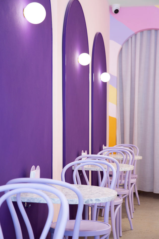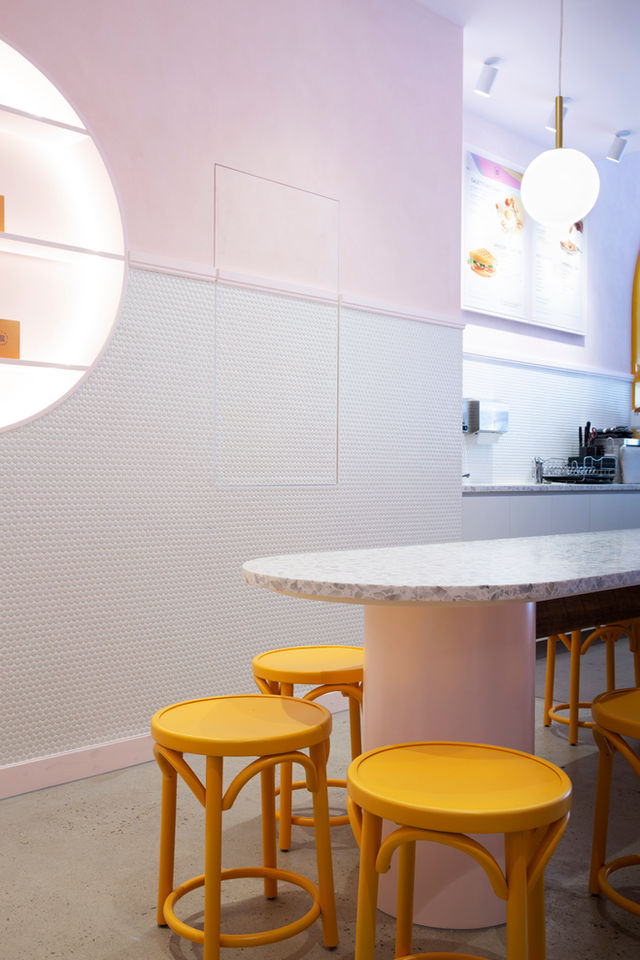 Like the food offering the interior is packed with vibrant flavours. A mix of pastel and white colours set the tone for a fun dining experience. Diners can sit at the private wall hung tables or dine in large groups around the large table situated at the end of the service counter where they can capture the theatre of waffle making.